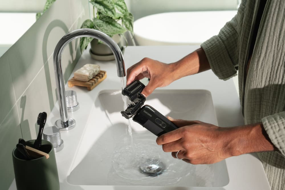 Stroke your face with a newfound accuracy. Two interchangeable blade heads give you a gentle and precise shave whether you want a smooth face or perfectly chiseled stubble.